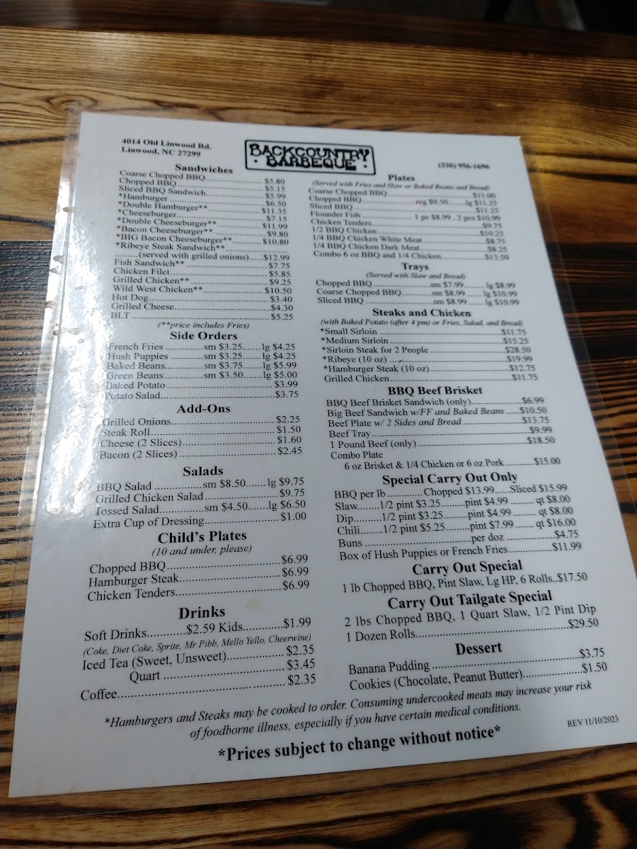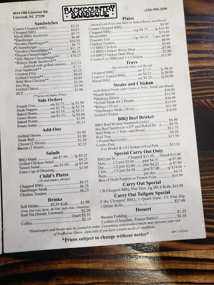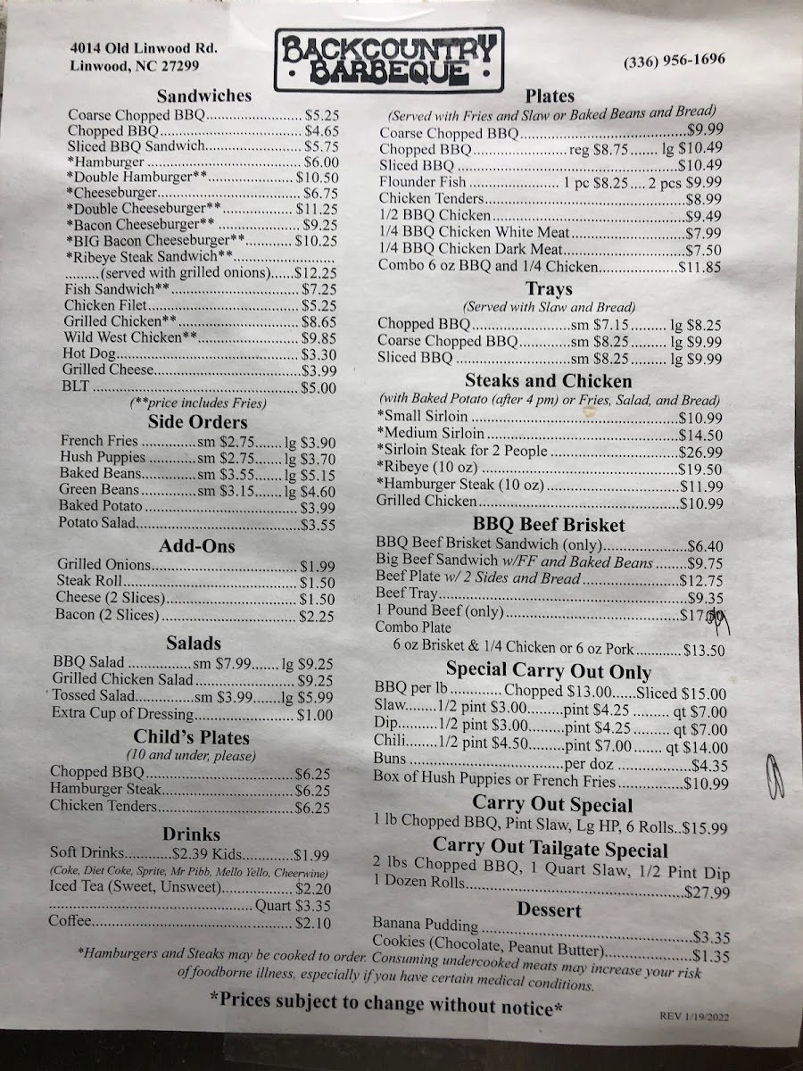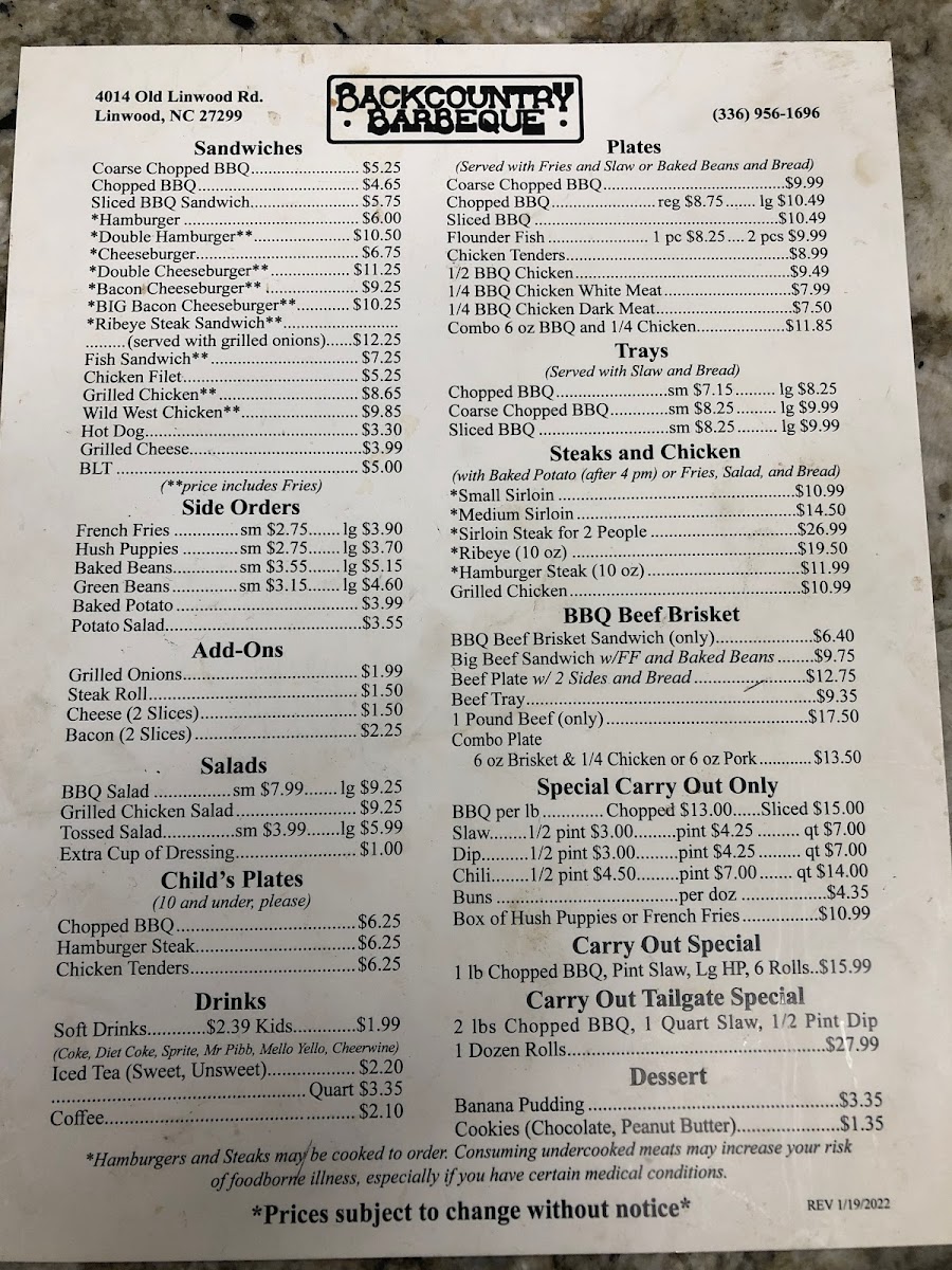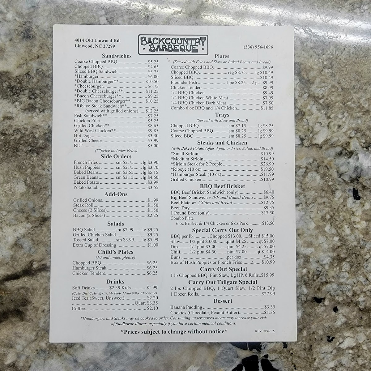 Welcome to BackCountry Barbeque, a cherished gem located at 4014 Linwood-Southmont Rd, Lexington, NC. This eatery embraces the spirit of southern hospitality with a menu that sings the praises of exquisite smoked meats and comforting sides.